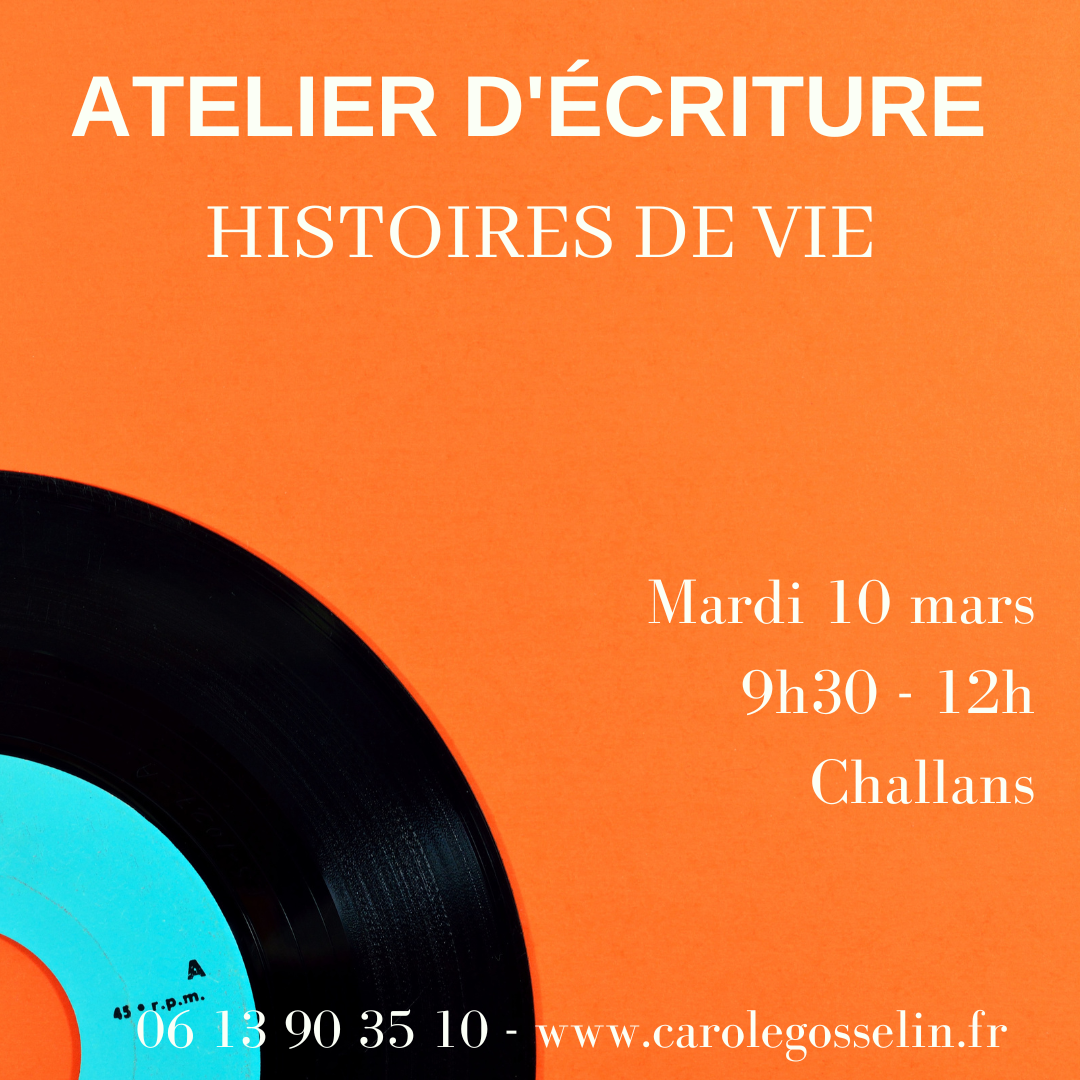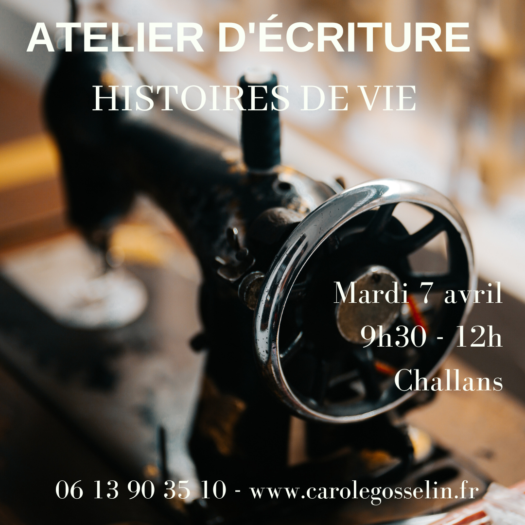 Adresse communiquée lors de l'inscription 85300 Challans" Je me suis laissé porter par les ateliers d'écriture Histoires de vie et me suis sentie rassurée. De là, mon regard a changé sur moi, mais aussi sur les autres. J’ai découvert la capacité que chacun possède pour retranscrire des émotions, des morceaux de vie et surtout de les livrer avec pudeur mais sincérité, sans peur. " - Evelyne